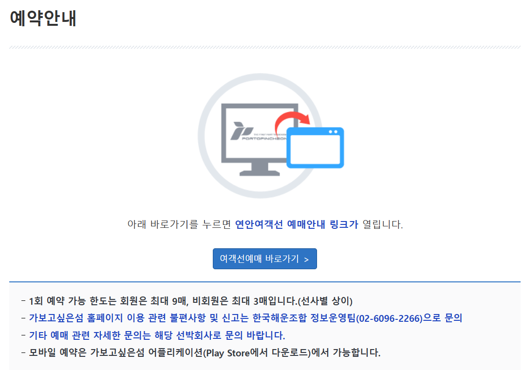 예시) 인천항 연안여객 터미널 홈페이지 예약 방법